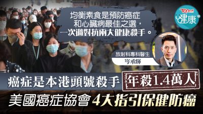 【防癌有法】癌症是本港頭號殺手 美國癌症協會4大指引保健防癌 28/12/2021 醫療新聞 閱讀更多 » 【黃金急救期】心臟病是全球第一殺手,急救是一種重要技能 10/12/2021 醫療新聞 閱讀更多 » 【高血壓】詠春高手頭暈求醫揭患高血壓 醫生推介洛神花茶助有效降血壓 11/11/2021 醫療新聞 閱讀更多 » 【KO便秘】排便用力過度可致爆血管中風 解構便秘症狀從飲食改善腸道健康 05/11/2021 醫療新聞 閱讀更多 » 【KO頸痛】長期用電腦手機致退化性頸椎 一招睡眠建議低成本紓緩頸痛 01/11/2021 醫療新聞 閱讀更多 » 【澳洲研究】人體每周攝入一張信用卡重量塑膠 醫生籲源頭減塑:微塑膠可致癌 19/10/2021 醫療新聞 閱讀更多 » 【骨質疏鬆】港女腰椎多層骨折揭患骨質疏鬆 醫生推介高鈣植物類食物鞏固骨骼 04/10/2021 醫療新聞 閱讀更多 » 【兒童健康】小朋友多食肉可致早熟較矮 醫生推介豐富營養食物助健康成長 21/09/2021 醫療新聞 閱讀更多 » 【新冠疫苗】接種新冠肺炎疫苗後出現淋巴腫脹 放射科醫生:建議觀察4至6週 04/08/2021 醫療新聞 閱讀更多 » Page1 Page2 Page3 Page4 Page5 Page6 Page7 Page8 Page9